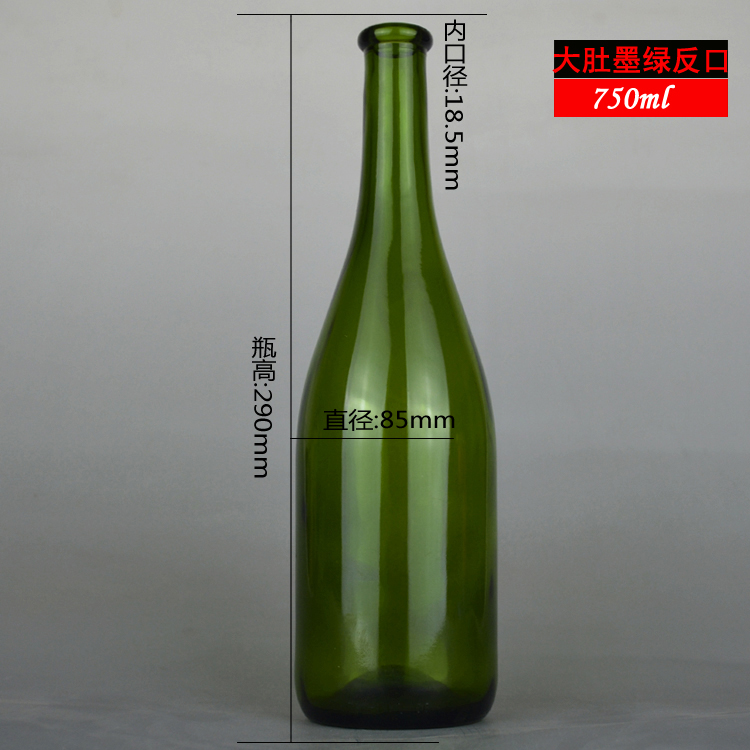 750ml 大肚翻口綠紅酒瓶 葡萄酒玻璃瓶